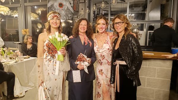 Il cuore della serata è stato il défilè di Fridami Collection, l'”Arte addosso” indossata per l’occasione «anche dagli uomini in segno di inclusione», come annunciato dalla stessa Manuela Carnini, medico chirurgo, già olimpionica di nuoto sincronizzato ad Atlanta ’96, che dopo essere stata vittima di violenza ha seguito la vocazione da artista. «È la mia missione – rivela – da sopravvissuta non posso fare altro che essere di aiuto per varie cause sociali». Con la collezione di abiti e accessori di seta realizzati a partire dalle sue opere d’arte, che hanno sfilato di fronte agli ospiti del gala, ha voluto trasmettere un messaggio forte, vero e vivo contro la violenza sulle donne e a favore di progetti sociali».