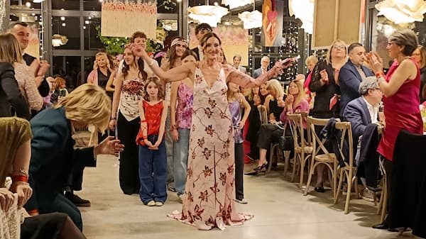 Il cuore della serata è stato il défilè di Fridami Collection, l'”Arte addosso” indossata per l’occasione «anche dagli uomini in segno di inclusione», come annunciato dalla stessa Manuela Carnini, medico chirurgo, già olimpionica di nuoto sincronizzato ad Atlanta ’96, che dopo essere stata vittima di violenza ha seguito la vocazione da artista. «È la mia missione – rivela – da sopravvissuta non posso fare altro che essere di aiuto per varie cause sociali». Con la collezione di abiti e accessori di seta realizzati a partire dalle sue opere d’arte, che hanno sfilato di fronte agli ospiti del gala, ha voluto trasmettere un messaggio forte, vero e vivo contro la violenza sulle donne e a favore di progetti sociali».