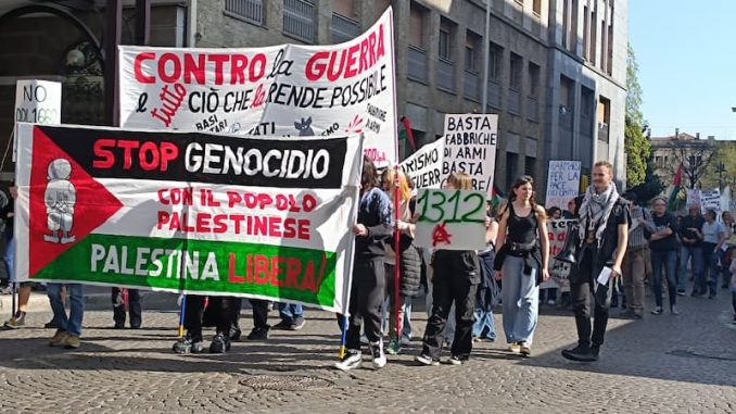 Sit-in pro Palestina in centro a Busto. La canzone: “Schiaccia il Sionismo”