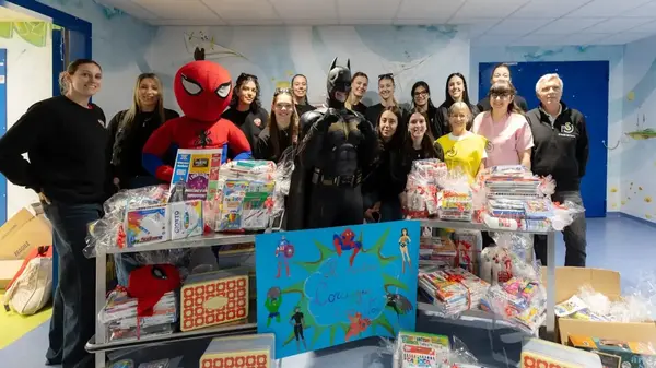 La mattinata al Del Ponte, organizzata insieme a SuperDreams, ha rappresentato un momento sospeso, quasi un controcampo emotivo rispetto alla tensione dei playoff. Niente schemi, niente pesi, solo pennarelli, tempere, supereroi e una squadra che per qualche ora ha messo da parte la pressione per restituire qualcosa alla città con Batman e Spiderman. Prima il Day Center di Oncoematologia Pediatrica, grazie al ponte costruito con la Fondazione Giacomo Ascoli; poi le corsie del reparto, con la collaborazione della Fondazione Il Ponte del Sorriso. Un piccolo Natale fuori stagione, fatto di colori e gesti semplici, che ha emozionato le giocatrici almeno quanto i bambini. «Tante di noi si sono commosse – ha raccontato il capitano Sofia Rebora – ma abbiamo visto sorrisi veri. È un’energia che ci portiamo dietro».