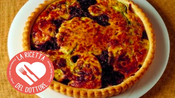 Impastate la farina con il burro, g 30 di grana, un pizzico di sale, uno di noce moscata e tanta acqua quanta ne occorre per ottenere un impasto sodo. Avvolgetelo nella pellicola e fatelo riposare in frigorifero per un’ora. Tagliate la barbabietola a listerelle e rosolatela per 4-5′ in g 20 di olio con g 30 di cipolla tritata. Spegnete, salate e lasciate raffreddare. Tagliate grossolanamente la scarola e saltatela in padella per un minuto con il resto della cipolla tritata in g 20 di olio. Lavorate la ricotta con il prezzemolo tritato, poi incorporatevi la scarola. Stendete la pasta a mm 4 di spessore e con essa foderate uno stampo da crostata con fondo mobile (ø cm 23, h cm 3). Distribuite sul fondo metà del composto di ricotta e la barbabietola. Mescolate quello rimasto con l’uovo e il grana rimanente e distribuite il composto sopra la barbabietola. Infornate a 180 °C per 35′ circa.