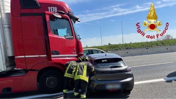 Secondo una prima ricostruzione, il mezzo pesante, dopo l’impatto, ha trascinato la vettura per circa 70 metri prima di arrestare la propria corsa.